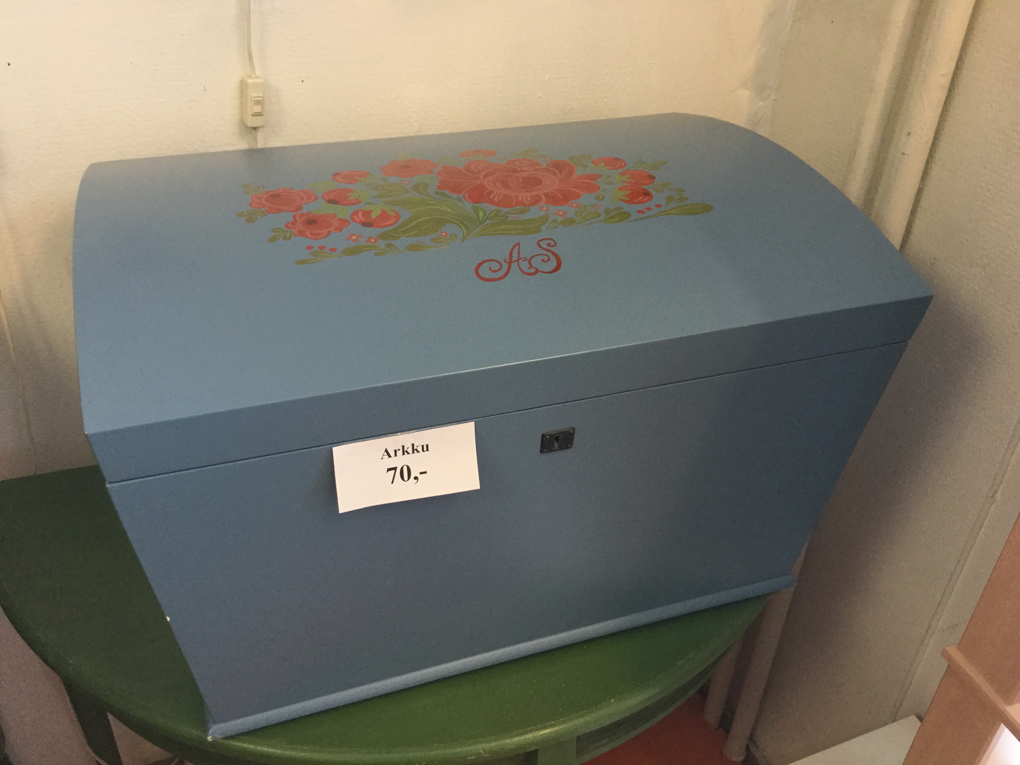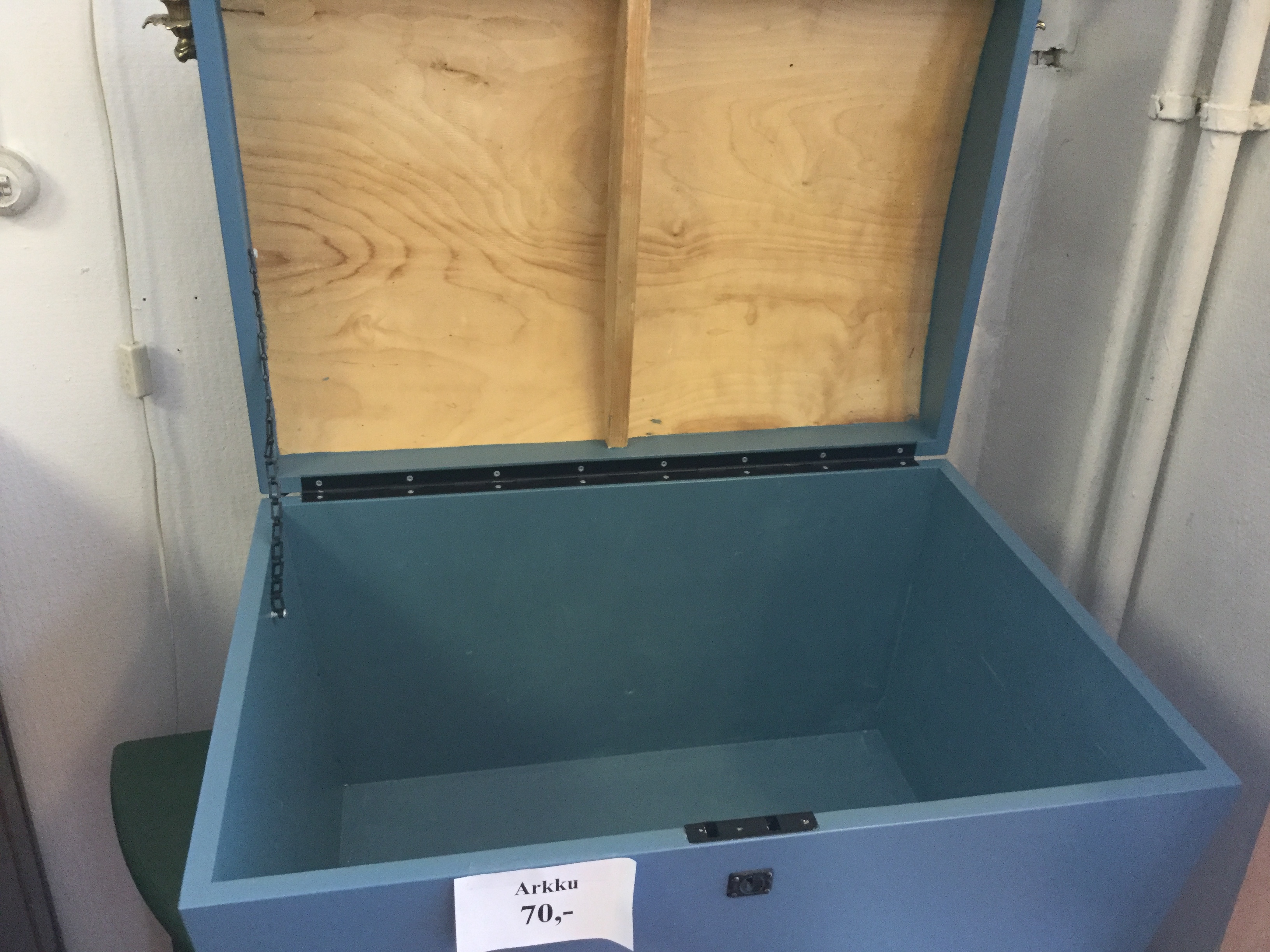 Takaisin: Arkut Arkut Hinta 70,- Kuvaus Vanha arkku joka on korjattu Leveys 70cm Syvyys 50 cm Korkeus 43cm Hinta 70,-