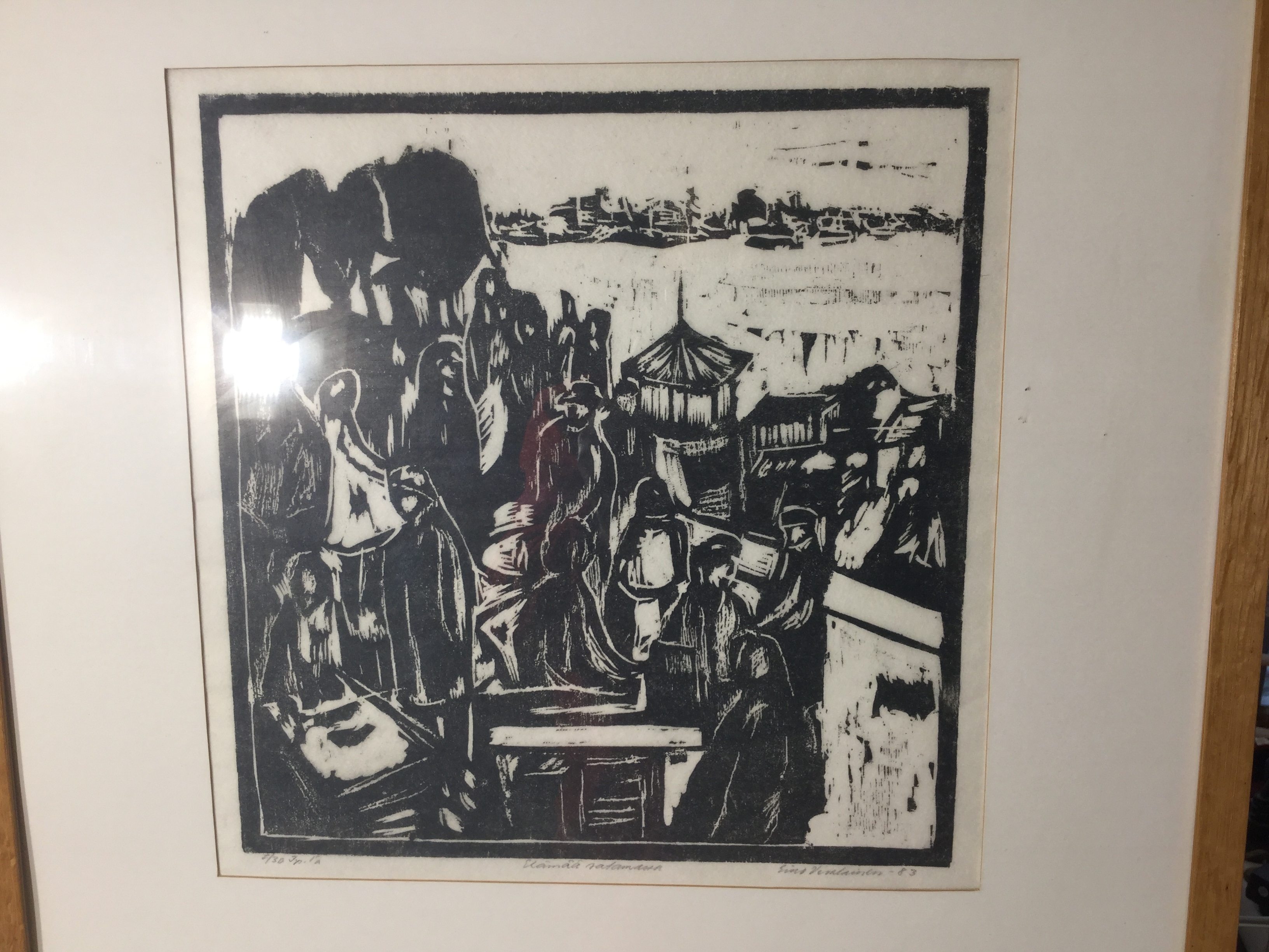 Takaisin: Taulut Taulu Eino Vesalainen Kuvaus Elämää satamassa v 1983 Kehys 53 x 68 Taulu 30 x 32 55,-