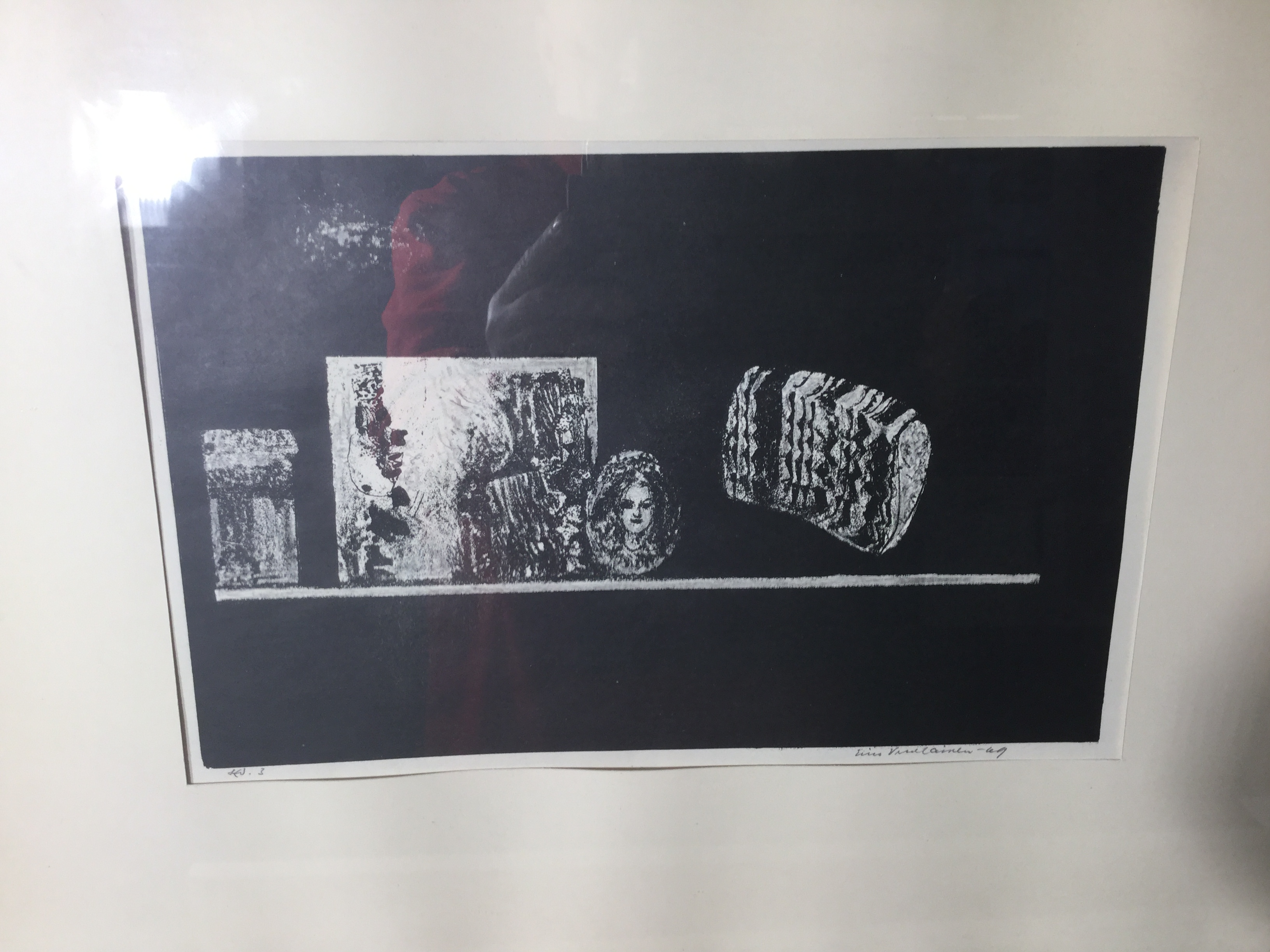 Takaisin: Taulut Taulu Eino Vesalainen Kuvaus Hylly v 1969 Grafiikkaa Kehys 67 x 52 Taulu 34 x 22 55,-