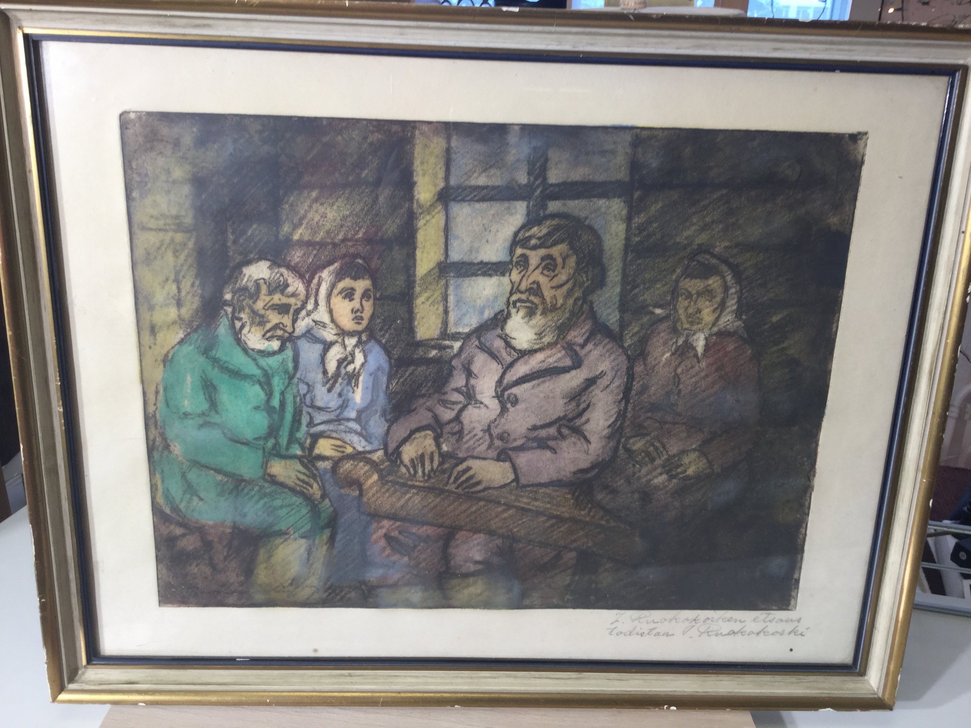 Takaisin: Taulut Taulu Jalmari Ruokokoski Kuvaus Kanteleensoittaja Etsaus v 1926? Kehys 52 x 40 Taulu 39 x 29 180,-